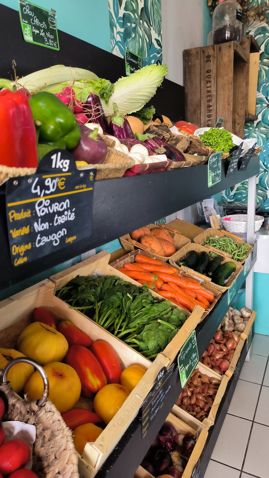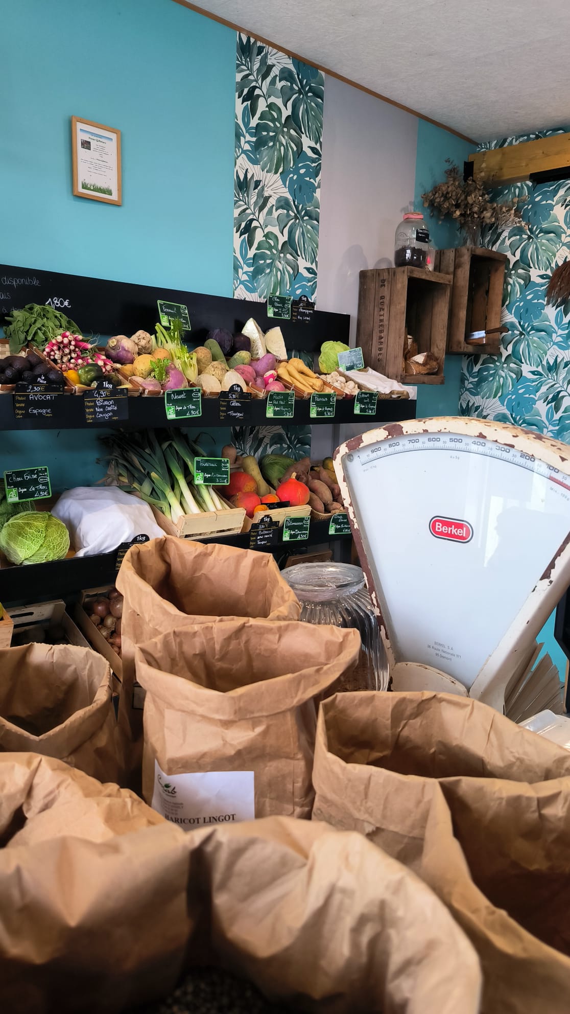 “Je travaille en direct avec 40 producteurs locaux situés dans un rayon maximum de 100km de Nieul-sur-mer. Soucieuse de la qualité des produits je visite chaque ferme et goûte chaque produit avant de le proposer à la vente.” Laure-Amélie Gauthey, gérante